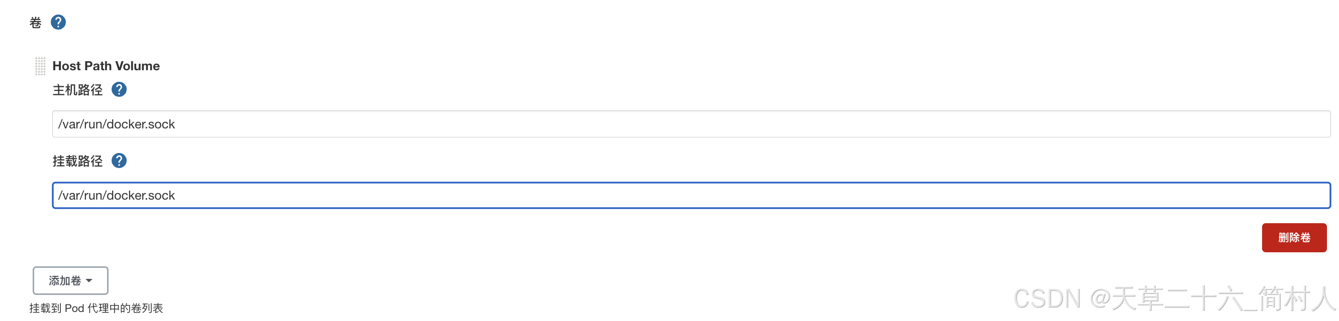 docker镜像必须要添加Host Path Volume,主机路径和挂载路径均为/var/run/docker.sock