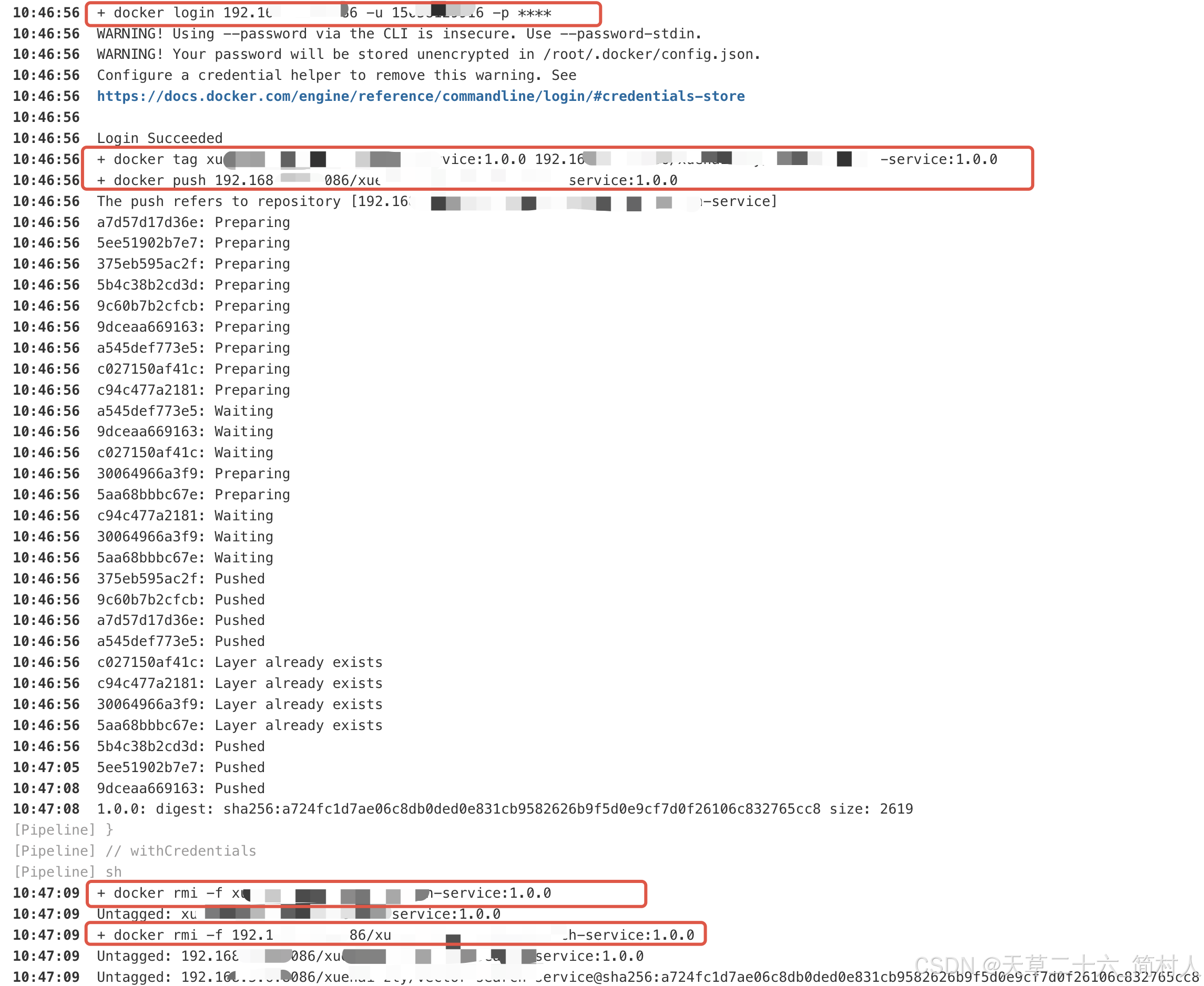 下面截图,省略docker build过程,因为它比较耗时,也是Jenkins CI的核心过程。
