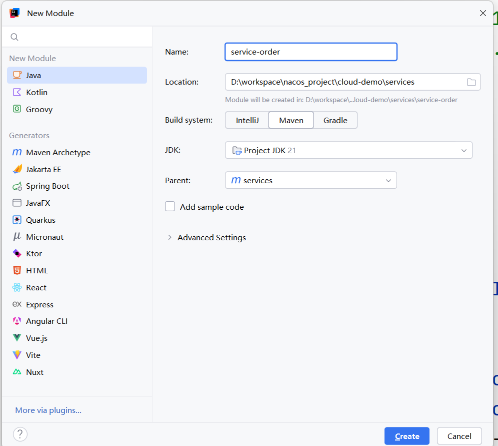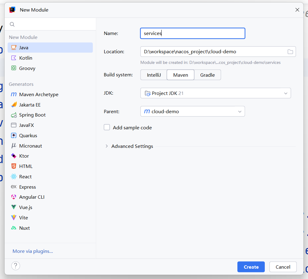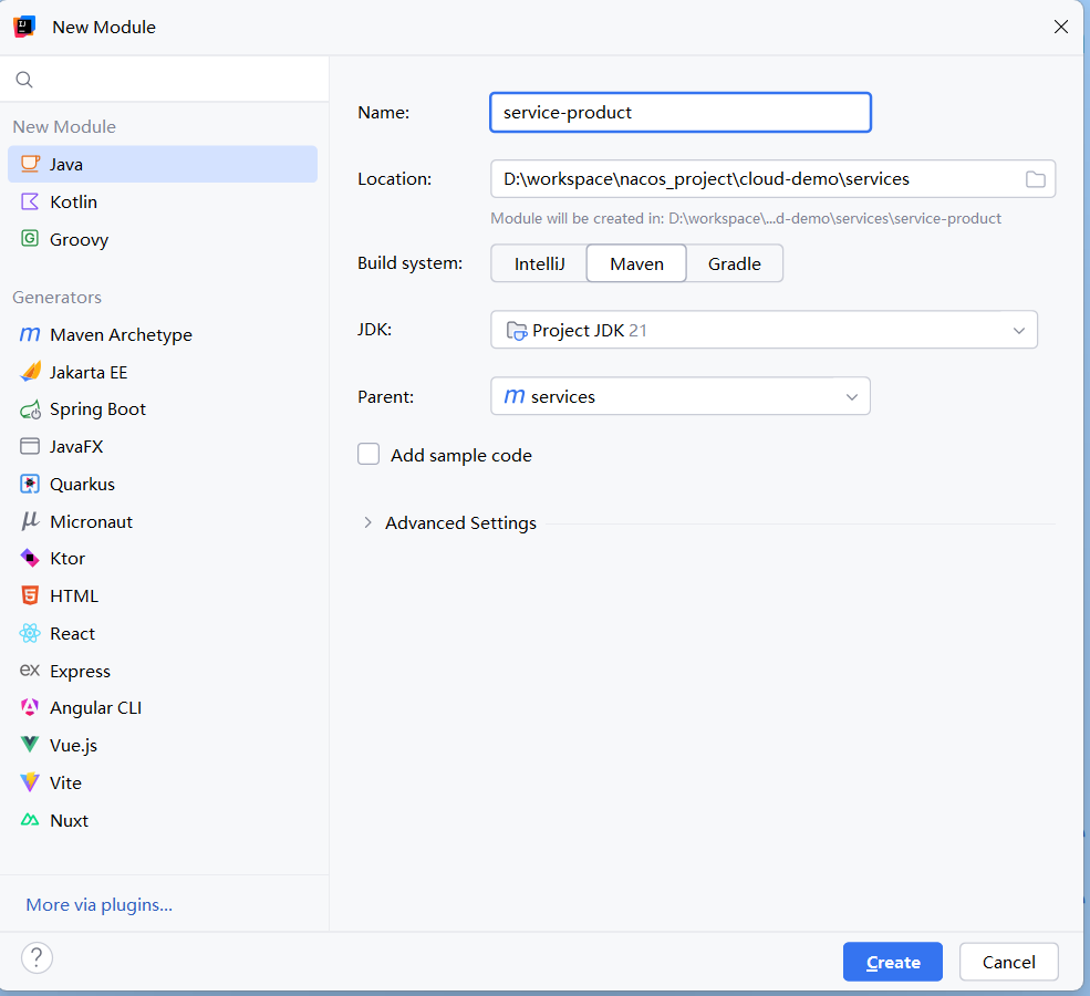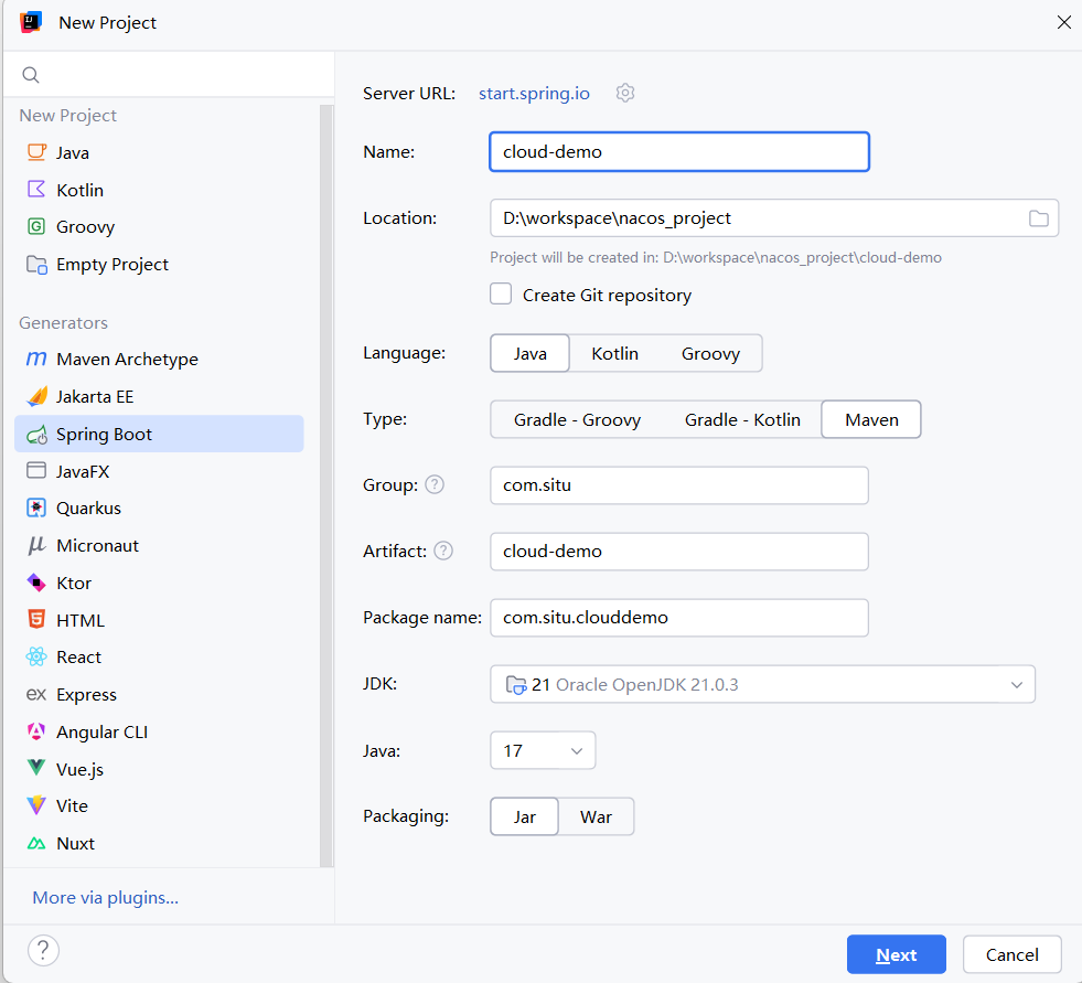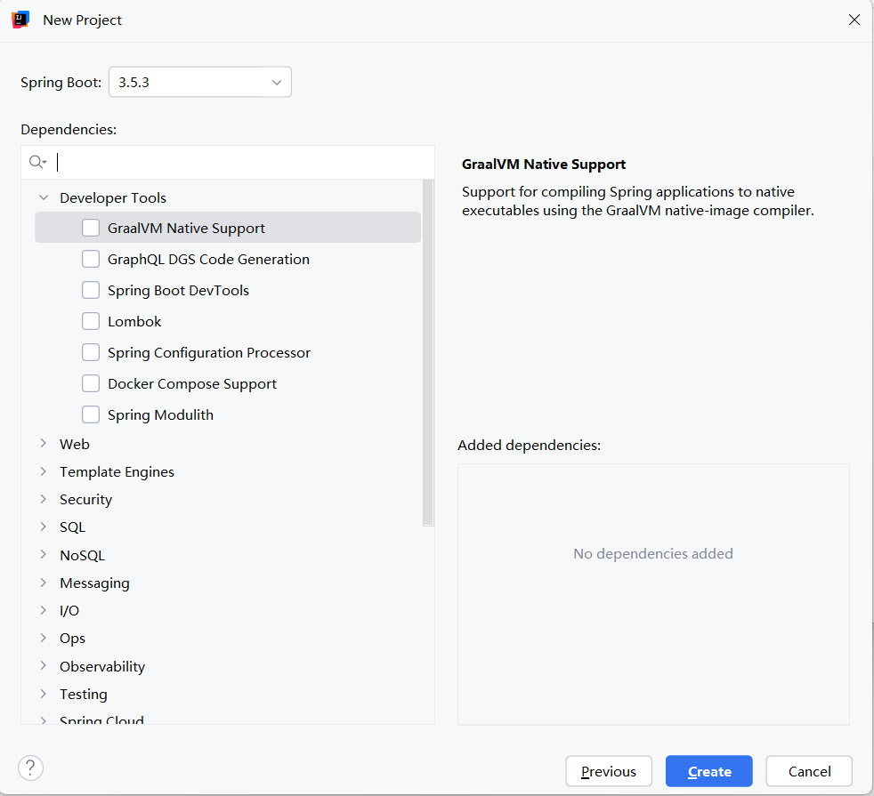 创建springboot项目,不需要添加任何依赖,后期自己手动添加
