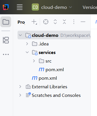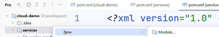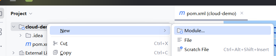 删除不需要的内容,只保留pom.xml文件和.idea文件