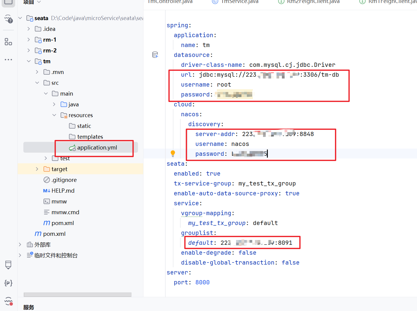 把三个应用的配置文件中对应的IP、用户名、密码都改成自己的。