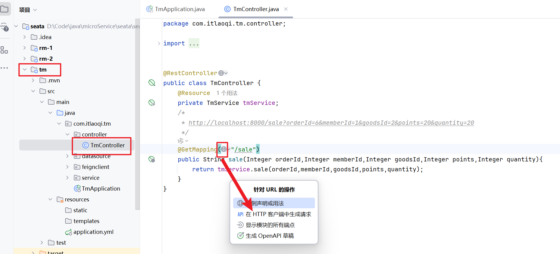 点击'在http客户端中生成请求',会自动打开这样的一个快捷访问文件