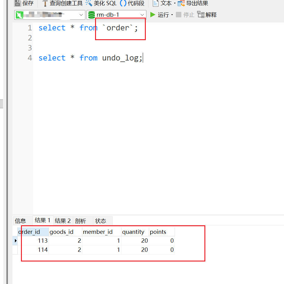 此时再看下数据库表记录,会发现rm-db-1数据库的order表新增了订单。