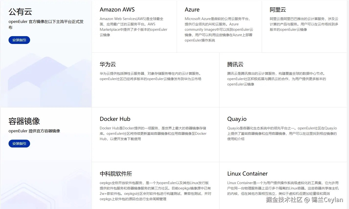 最直接的方式是访问openEuler官方网站的下载页面。这里提供了所有长期支持(LTS)版本和创新版本的镜像文件。网站布局清晰,提供了ISO镜像、云镜像和容器镜像等多种格式,适配从物理机、虚拟机到云环境的全场景需求。