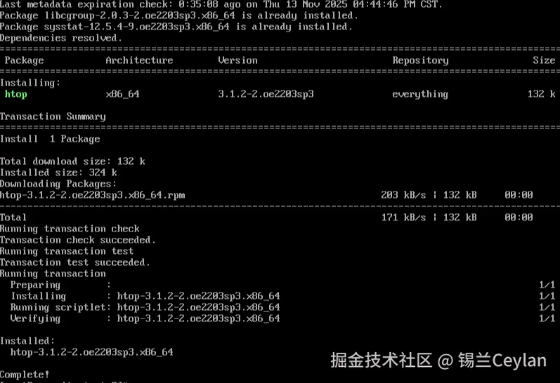# 使用htop动态监控CPU和内存(若未安装,可使用sudo dnf install htop -y)