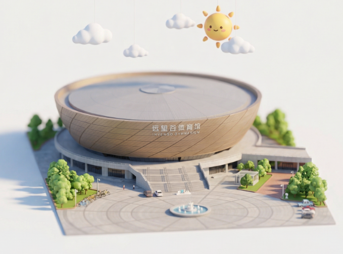 画面描述:根据这张图片,生成一张Q版的微缩模型,主体是景观轴侧微缩模型。上方是当前天气的微缩模型,比如云、太阳等。梦工厂风格,3D建模,细腻、柔和的光线投影,画面周围大面积留白