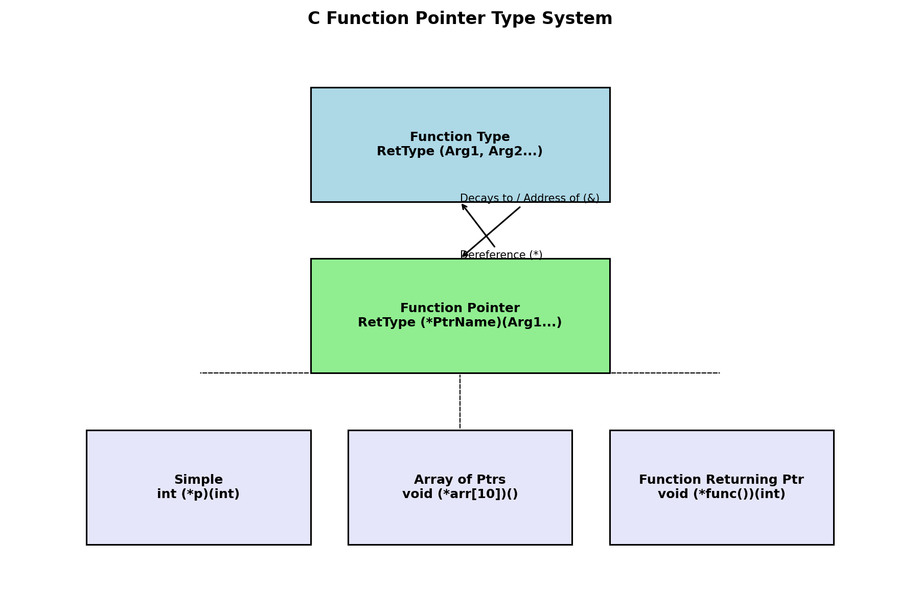 | 函数指针 | Function Pointer | 指向函数代码段的变量 |