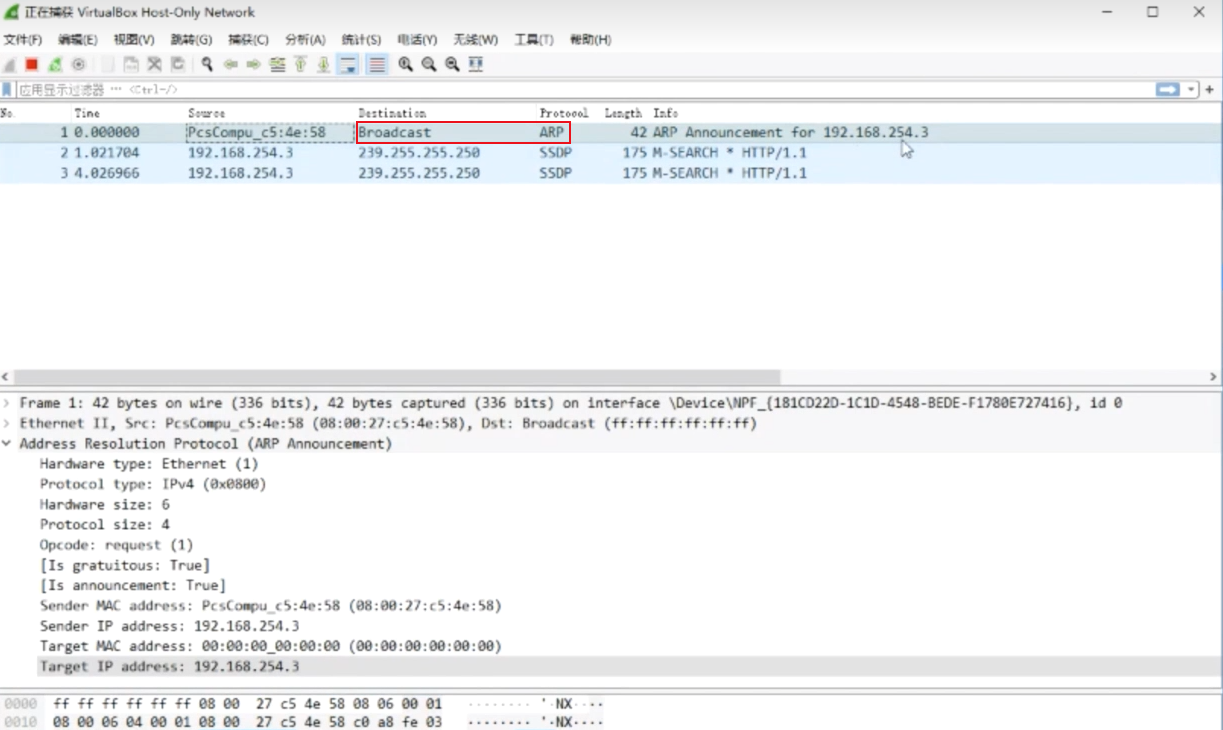 以太网的dst mac填写的是广播包,protocol为ARP,表示交给ARP协议处理