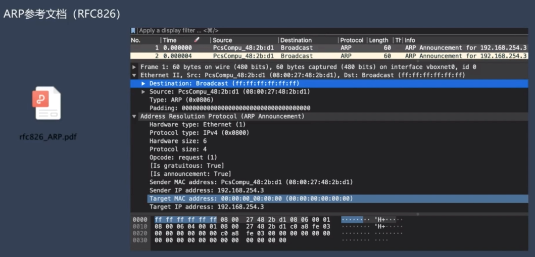 这样设计可以保证广播范围内的主机都能收到,同时无需做出回应。只需要根据ARP协议要求来提取出来请求主机的 IP <-> ARP 的映射关系,就ok了