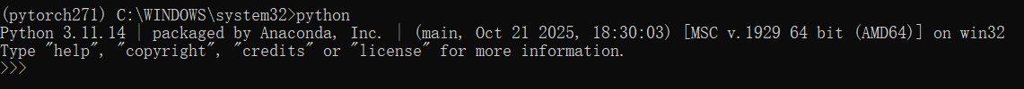 conda create --name pytorch271(自己的虚拟环境名称) python=3.11