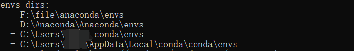 envs-dirs是虚拟环境的存放目录,pkgs-dirs是下载的包缓存的存放目录。