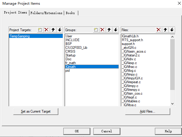 和fr_math库添加时一样的捕捉,将所有IQmath源码添加到项目中
