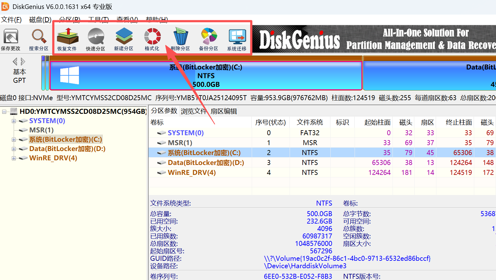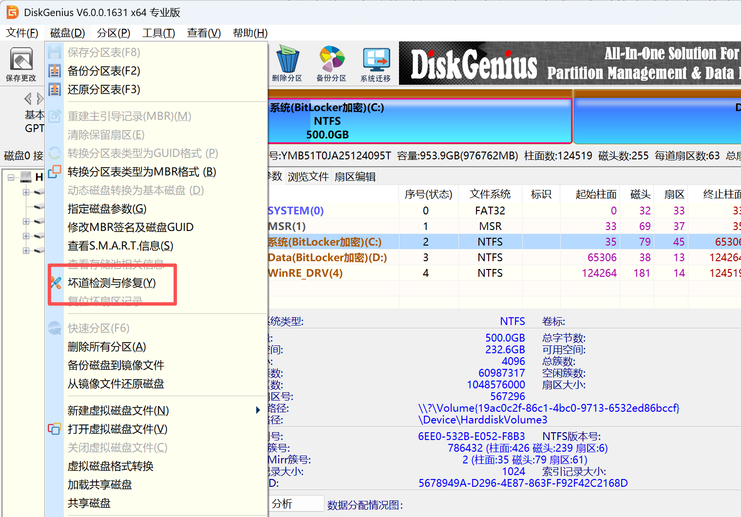 用分区工具隔离坏道:打开后找到硬盘坏道所在区域。