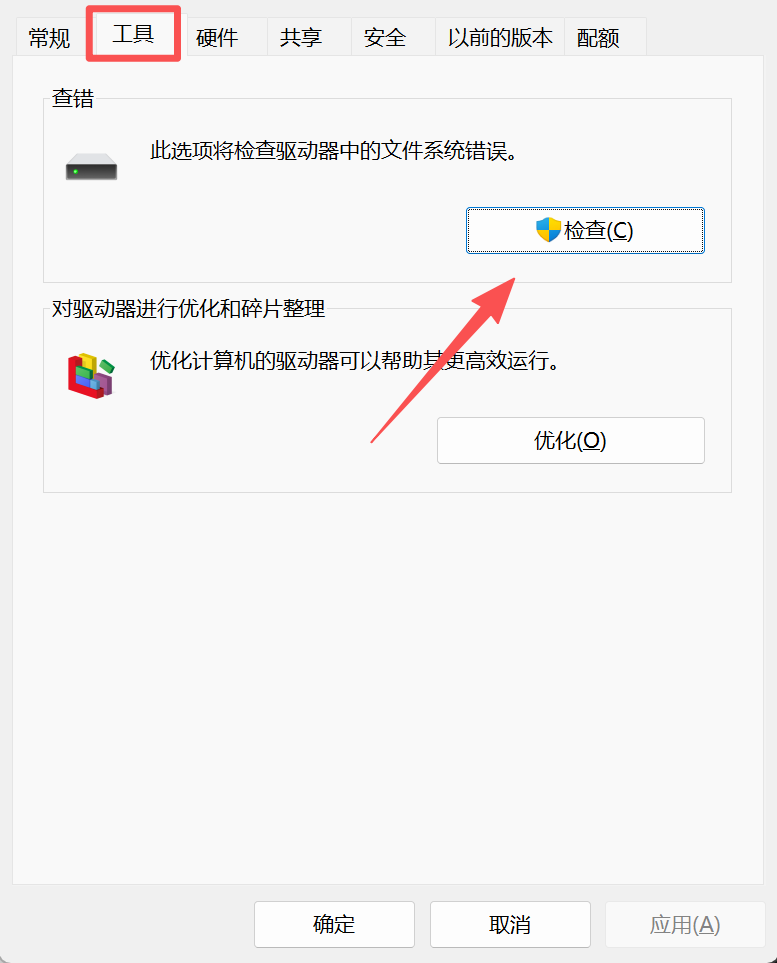 - 选择"属性"→"工具"→"检查",系统会自动扫描硬盘错误(含逻辑坏道)。