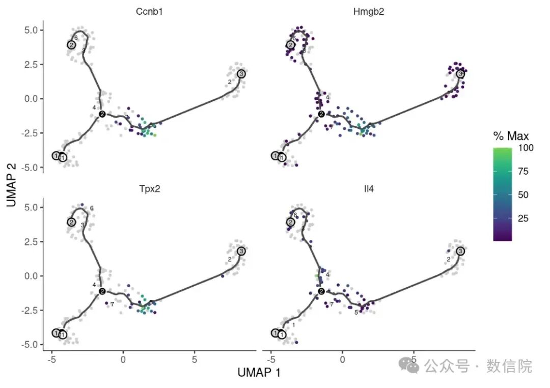 Monocle3通过构建细胞轨迹模型,帮助研究者揭示细胞在生物学过程中如何从一个状态转变到另一个状态。Monocle3的核心优势在于它能够处理复杂的非线性轨迹,提供更准确的轨迹推断和细胞状态排序。