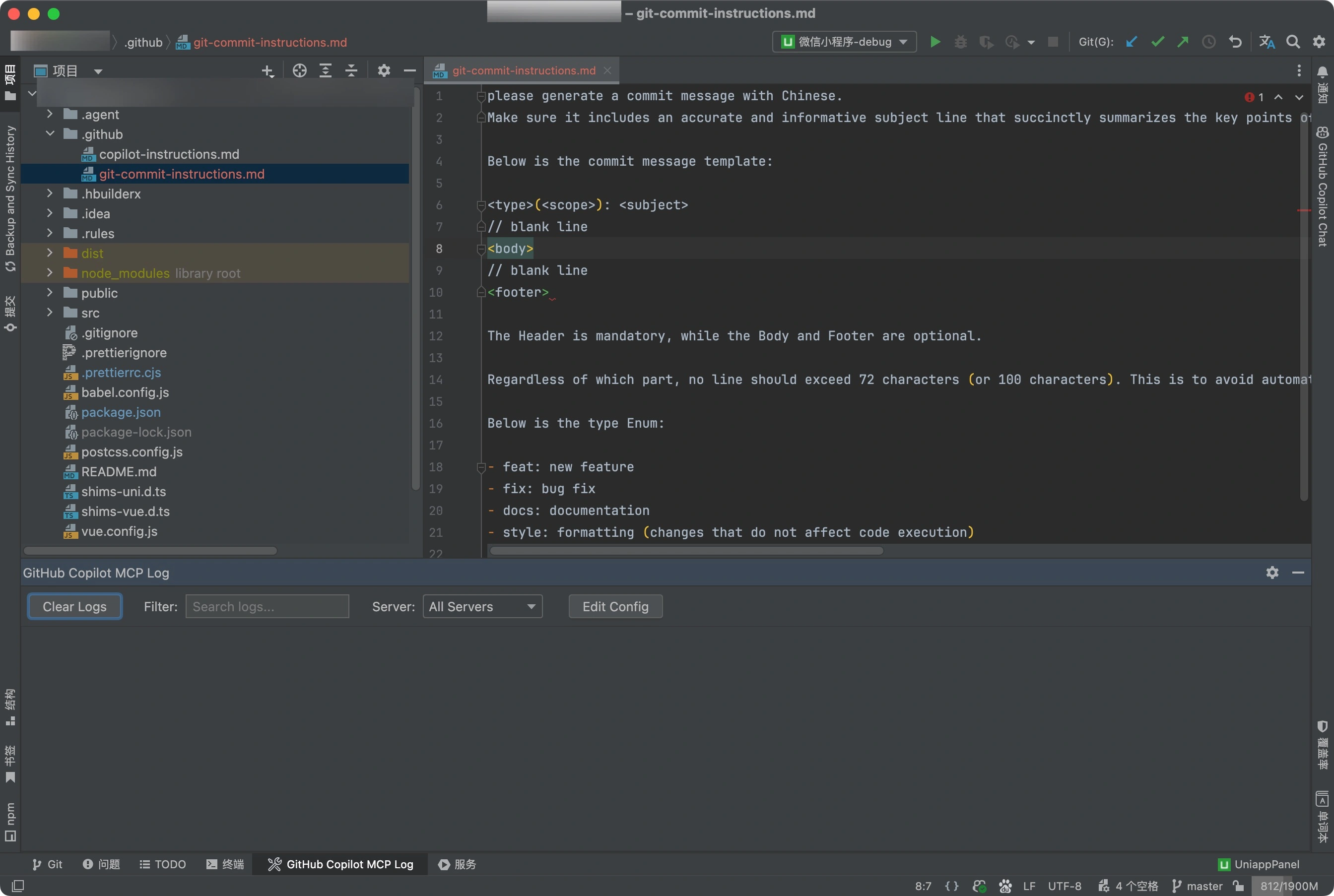 - 在git-commit-instructions.md 中粘贴上面的规则
