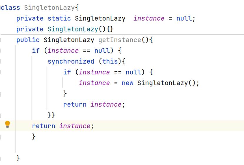 假如现在有两个线程同时调度,因为调度是随机的,可能一个线程刚开始创建instance,另外一个已经创建完了,这里就会出现不必要的创建,浪费资源,最后会被GC给回收掉,但确实是浪费了当时的资源,假如很大的情况下就会爆了。