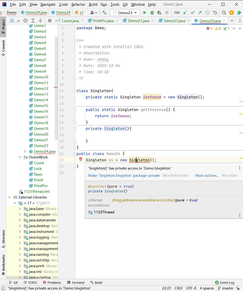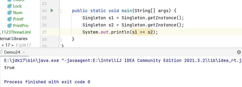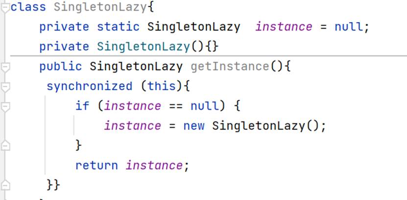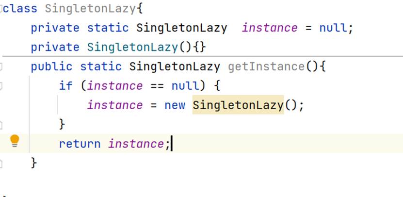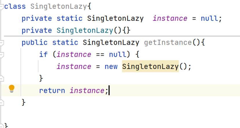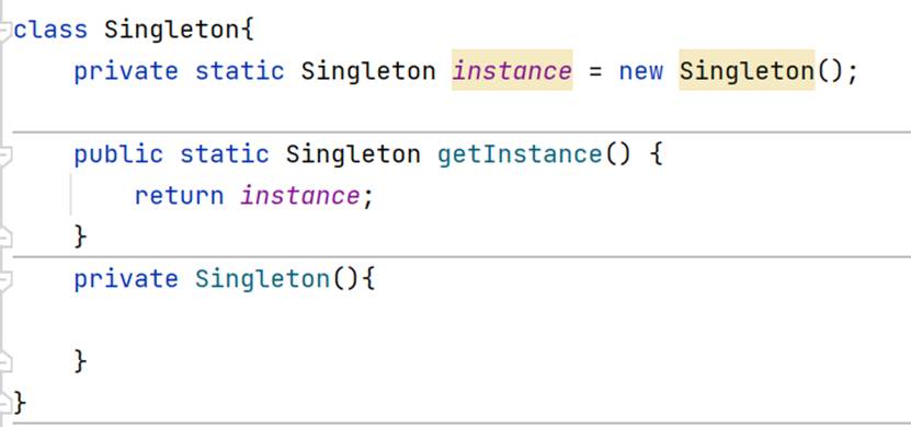 将构造方法私有化,然后在一开始就把这个对象创建出来,因为是static修饰的,所以在程序一启动就被创建出来了,在外部无法创建新的对象