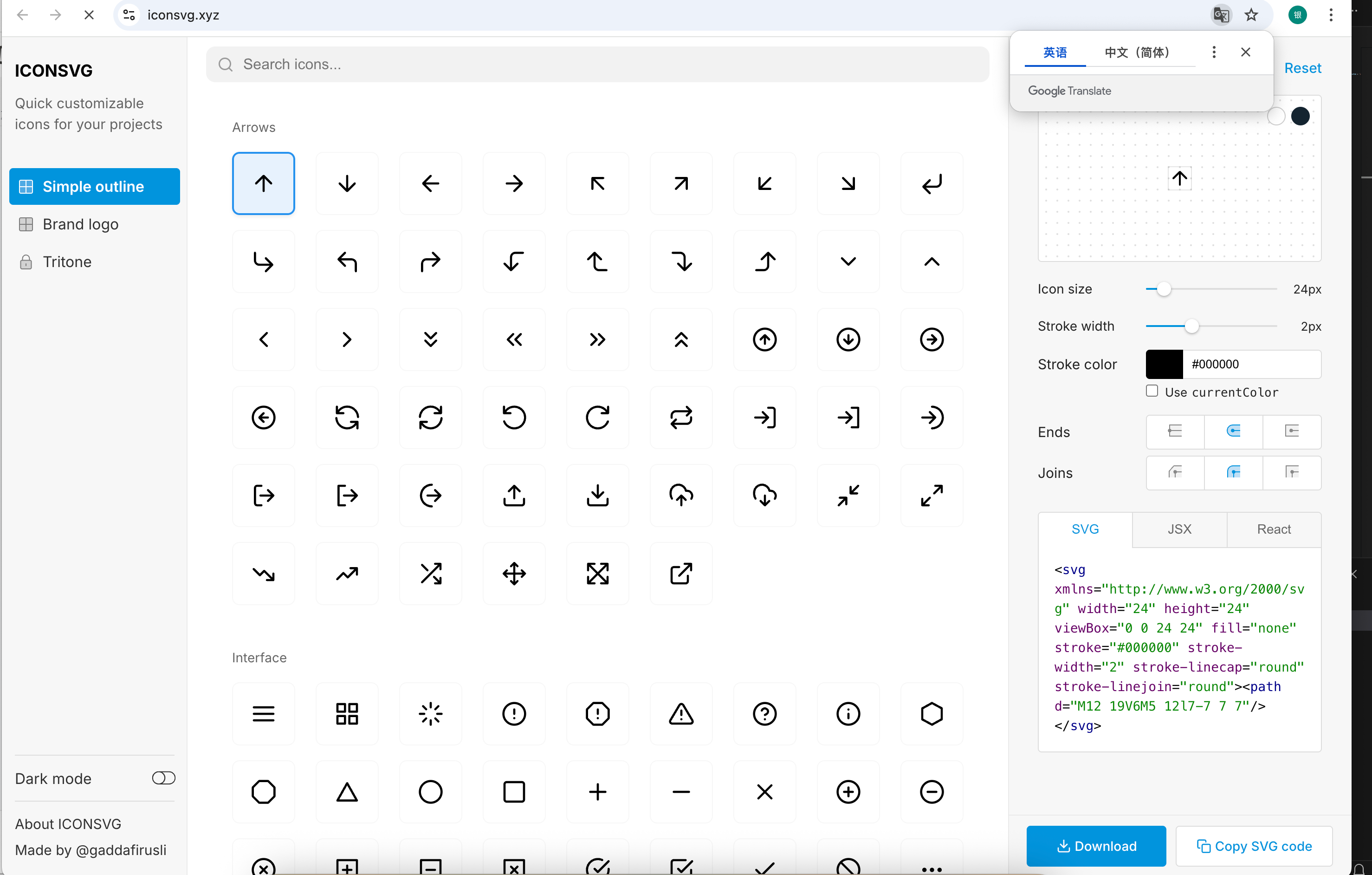 4、这是一个在线可自定义设计 SVG 图标素材的网站,提供常用图标素材,可进行二次设计并导出。