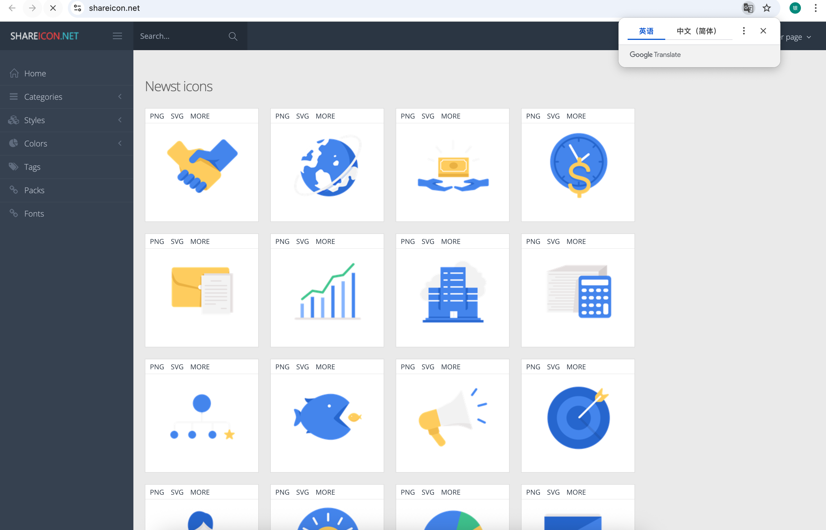 5、提供超过 25 万种 ICON 矢量图片素材,有 120 多种分类,提供 PNG、SVG 等格式。