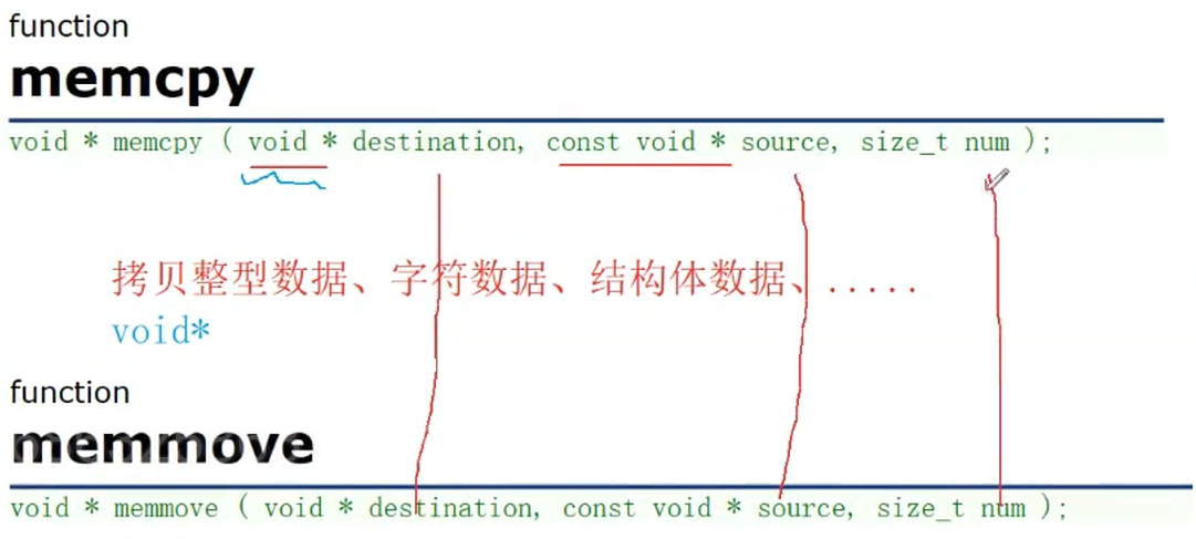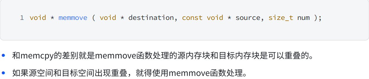 有重复的拷贝的情况,就使用我们的memmove