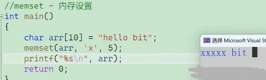 memset(arr, 'x', 5);