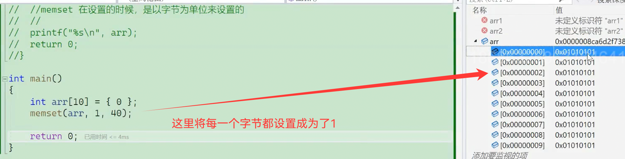 memset(arr, 1, 40);