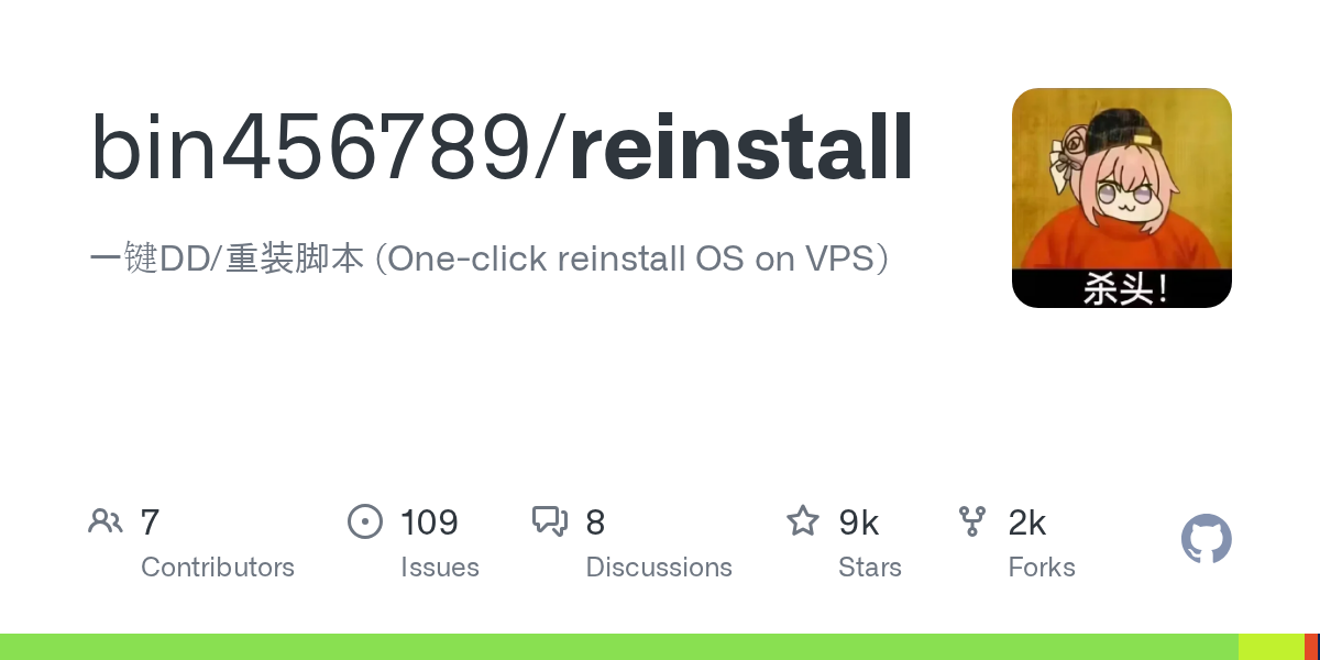 - 💡 推荐语: 一键重装VPS系统,支持多种Linux发行版和Windows,无需救援模式直接从网络安装纯净操作系统