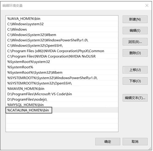 最后将"%CATALINA_HOME%\bin"加入 Path 变量中,如下图所示。
