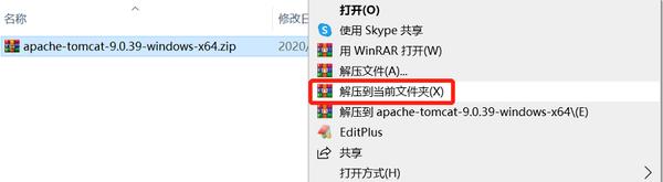 解压版 Tomcat 下载后得到一个 zip 压缩包,是免安装的,使用 WinRAR 等软件解压到任意目录后就可以直接使用。