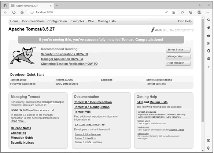 安装版 Tomcat 在安装过程中会自动进行相关配置,比如找到 JDK 的位置、读取环境变量 JAVA_HOME 等。安装版 Tomcat 在启动后以服务的方式运行,并且带有 GUI 管理工具(图形界面化的管理工具),用户可以很方便地通过界面进行管理和操作,非常友好。