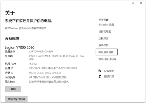 ② 单击"高级系统设置"选项,如下图所示。