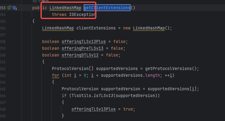 我们继承了 DefaultTlsClient ,实现getClientExtensions,此方法返回为hashtable,hashtable的存取顺序并非统一,所以我们需要更换为LinkedMap