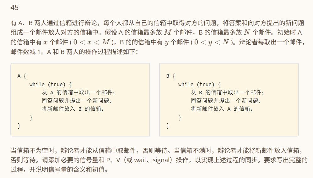 semaphore B_empty = N - y; // B 信箱中还能放多少个邮件