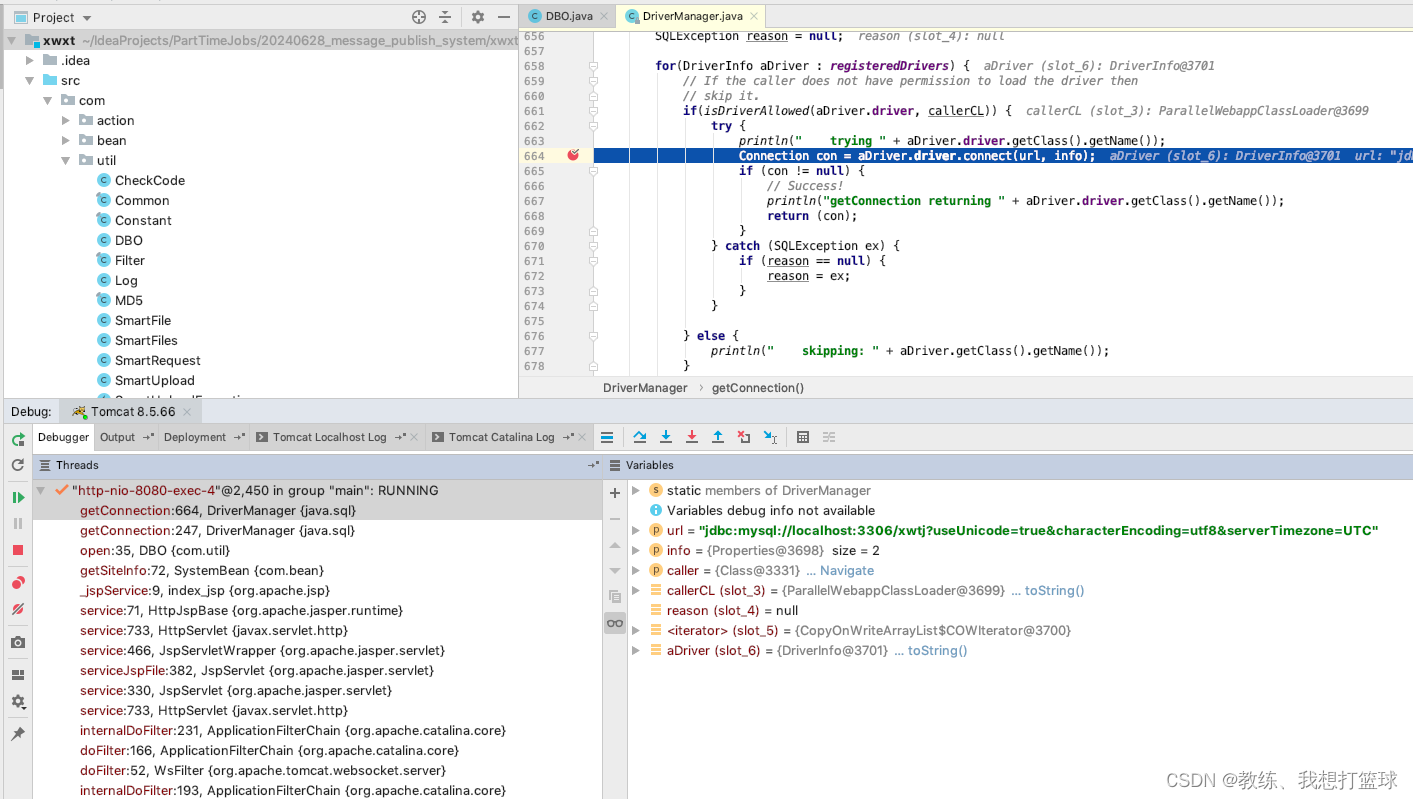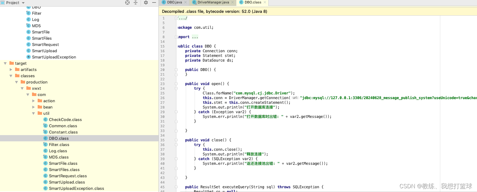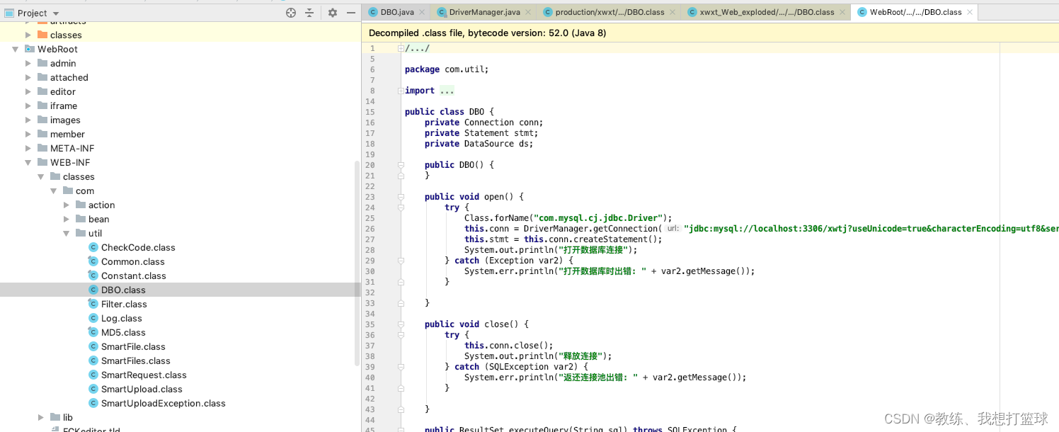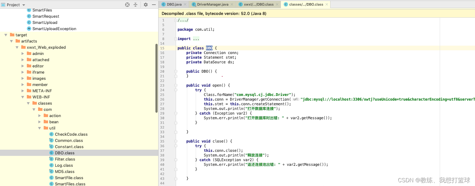 tomcat 所使用的 artifacet 中的 WEB-INF 下面的 classes 下面的 DBO 的数据是错误的