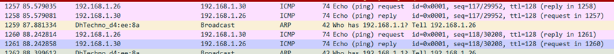 在电脑端ping 192.168.1.30地址,发现ping不通,但wireshark抓包发现FPGA与电脑可正常收发包。