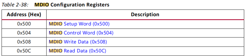 Xilinx通过axi_lite接口配置MDIO需要关注以下寄存器。
