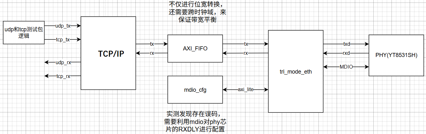 - Tri_mode_eth:xilinx的千兆网IP_CORE,当前使用RGMII与以太网芯片交互。