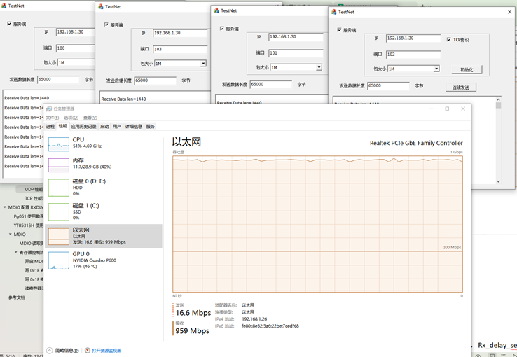 上板测试后,发现FPGA与电脑之间存在报文交互,交互正常。