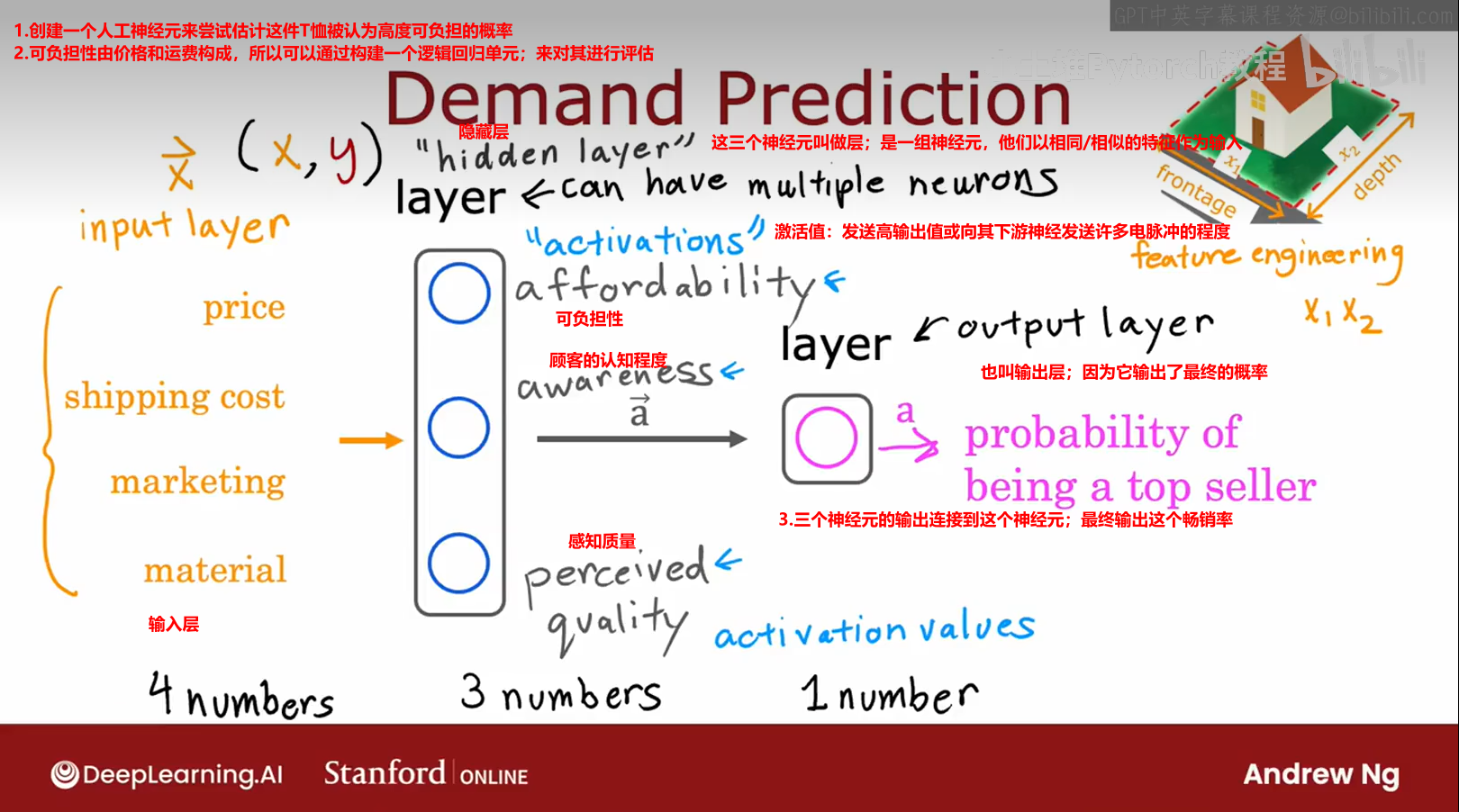 尽管之前将这个神经网络描述为一个计算本例子的可负担性、意识、感知质量,但神经网路的一个很好的特性是,当你从数据中训练它,你不需要明确决定什么是特征,如可负担性等,神经网络应该计算,相反,它会自己找出在隐藏层中要使用的特征。