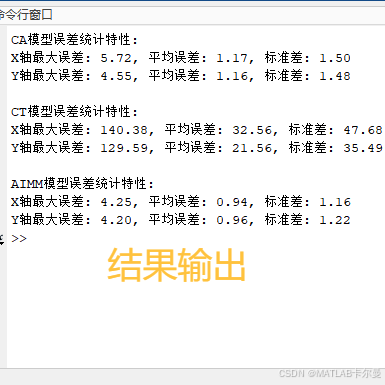程序为二维目标机动跟踪的 AIMM(Adaptive IMM)自适应交互多模型滤波器 。系统同时包含 CA(Constant Acceleration,匀加速)模型 与 CT(Coordinated Turn,匀角速度转弯)模型 两类运动模式,通过 IMM 框架根据模型似然动态调整其权重,从而在机动目标跟踪中兼顾稳态精度与转弯响应能力。滤波主体采用 Sage-Husa 自适应噪声估计 EKF,能够在观测噪声不稳定或统计未知的情况下实时调整测量噪声协方差,提高鲁棒性。