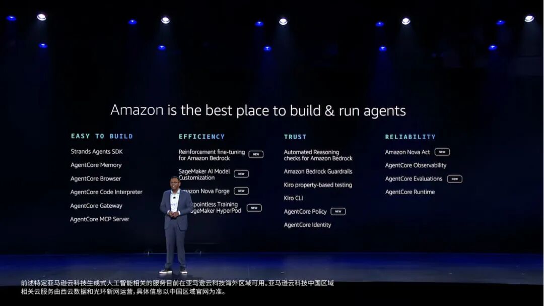从Matt Garman官宣的3nm的底层芯片突破,到Amazon Nova Forge的数据融合革命,再到Swami 所强调的"可靠"的Agent体系,亚马逊云科技在2025 re:Invent上展示的不仅仅是技术清单,而是一张通往未来的完整船票。