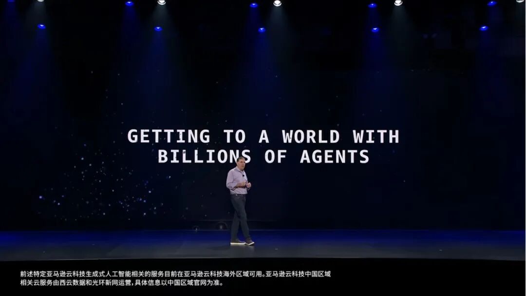 亚马逊云科技 CEO Matt Garman现场预判:"AI的拐点已至:从聊天机器人,到真正能干活的Agent。未来每个公司内部会有数十亿个Agent在替我们做事、替我们构建。"