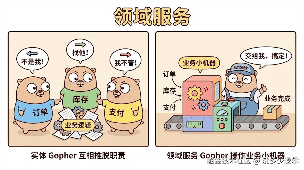 用于承载那些无法单纯属于某个实体或值对象的业务行为。