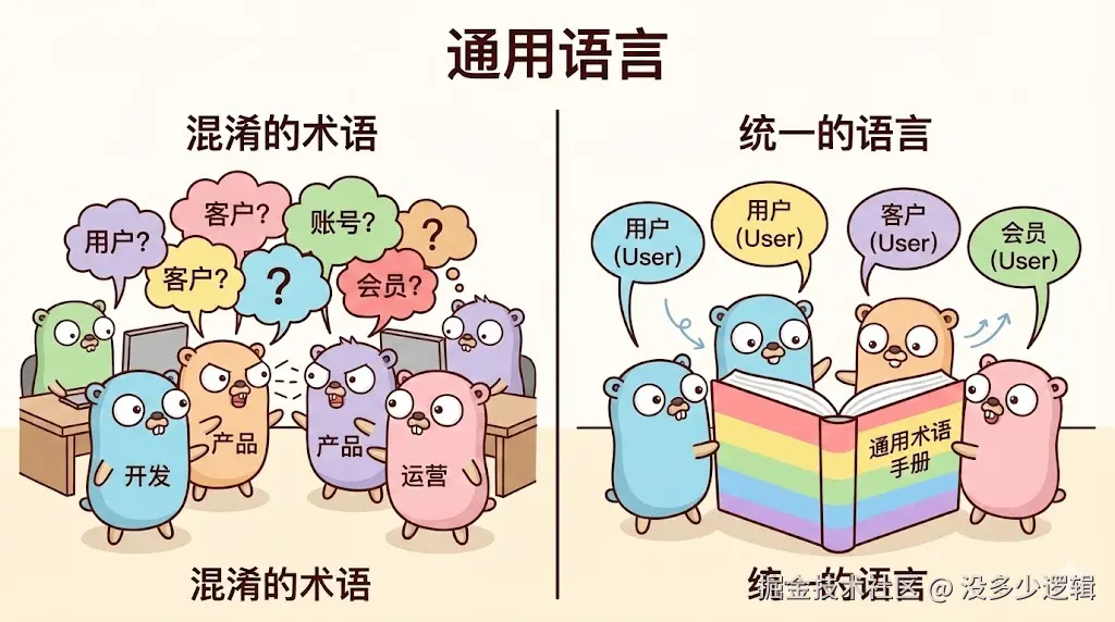 如果语言不统一,会导致模型不一致,从而产生大量的 Bug 和沟通误解。