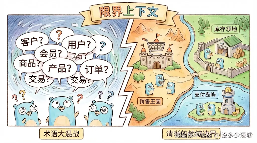 如果没有限界上下文,不同业务的概念会混淆在一起,导致模型扭曲,系统极难维护。