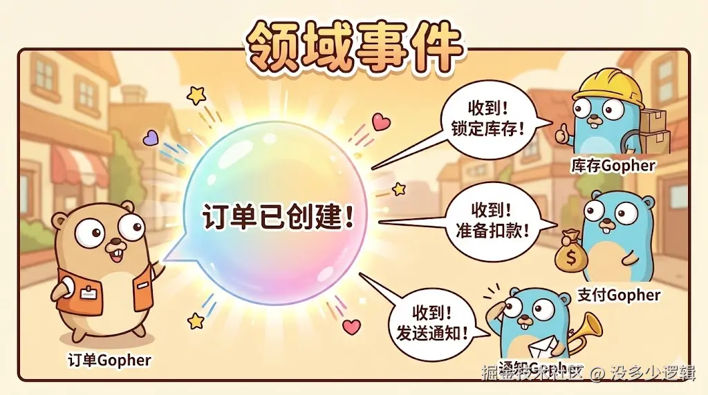 一句话概念:领域事件记录"已经发生的业务事实"。