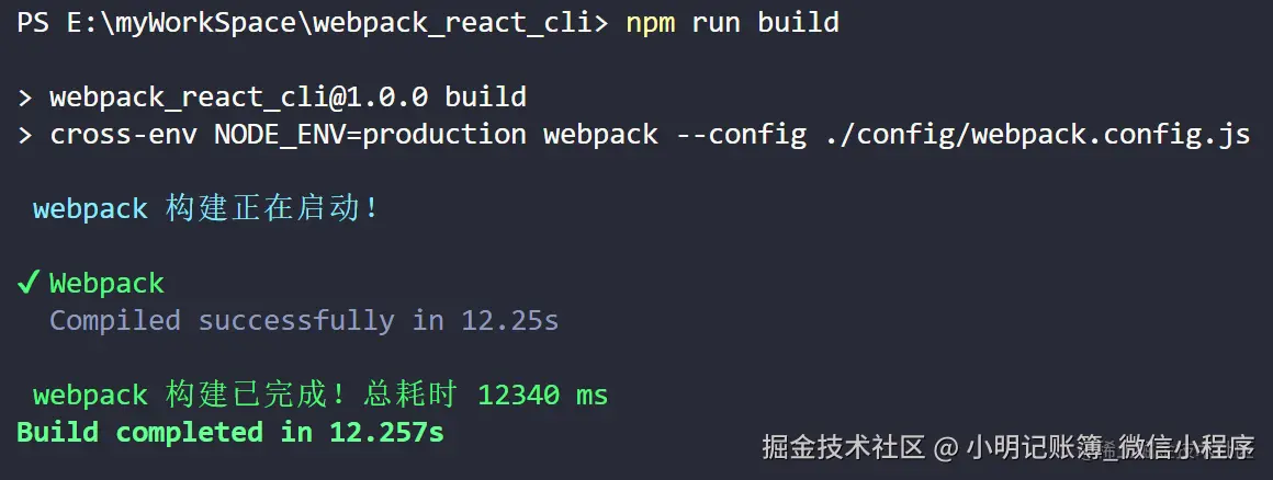 自定义 take-time-webpack-plugin 插件,该插件输出 "webpack 构建正在启动!",打包完成后输出 webpack 构建已完成!总耗时 { time } ms,先看效果图。