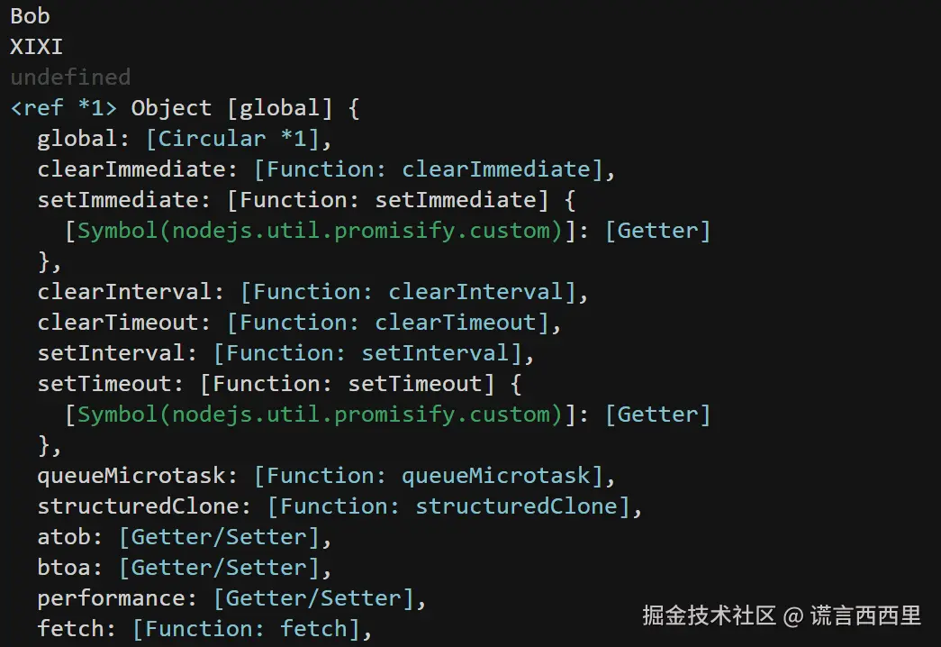 this->bar,所以this.myName也就是XIXI - 普通函数调用: