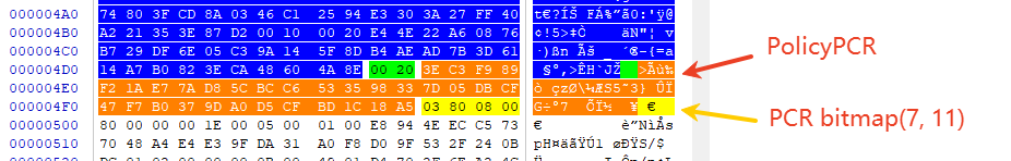 list[BYTE] | | | | .pcrSelect ff0000 ...